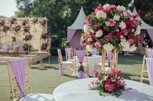 Dekorasi yang elegan disesuaikan dengan tema acara Anda.